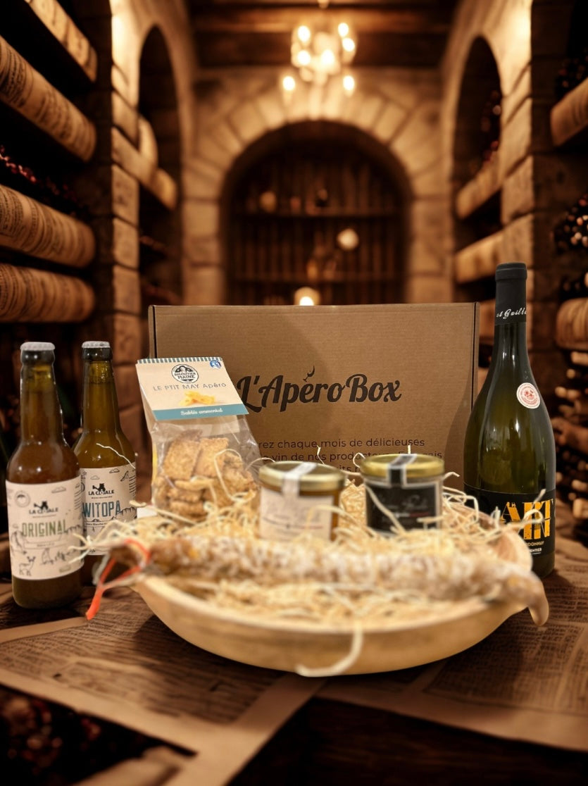 Chaque Box contient un ou plusieurs vins à déguster ainsi que plusieurs gourmandises tels que (charcuteries, gâteau salée, tartinade, biscuits ...) puis quelques suprise (tire-bouchons, planche à charcuterie...)